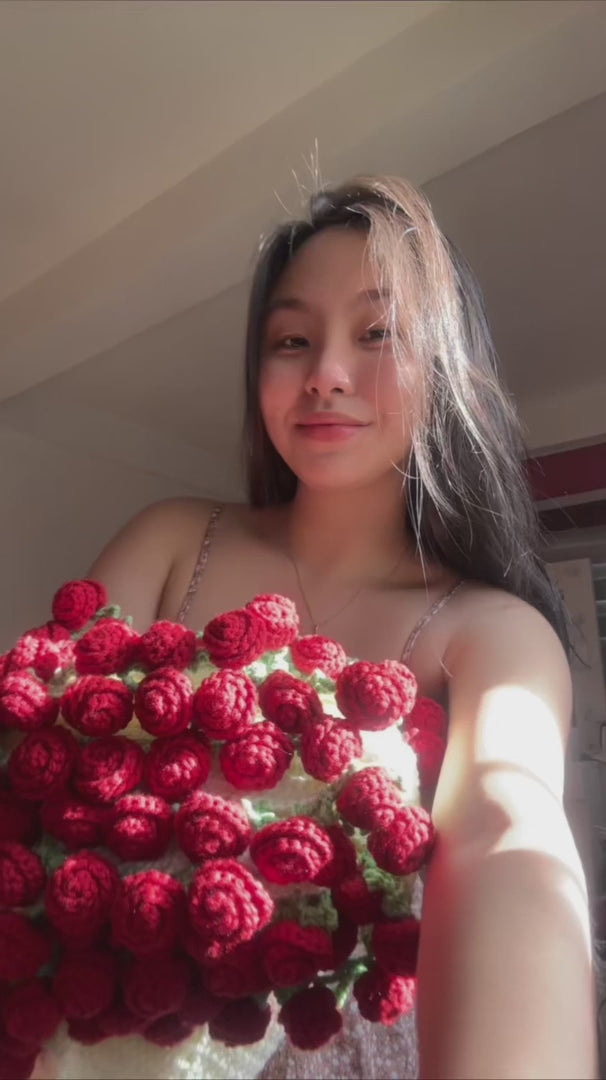 Our dual-craft design blends hand-knitting with lifelike crochet flowers for a bouquet that’s both cozy and breathtaking.